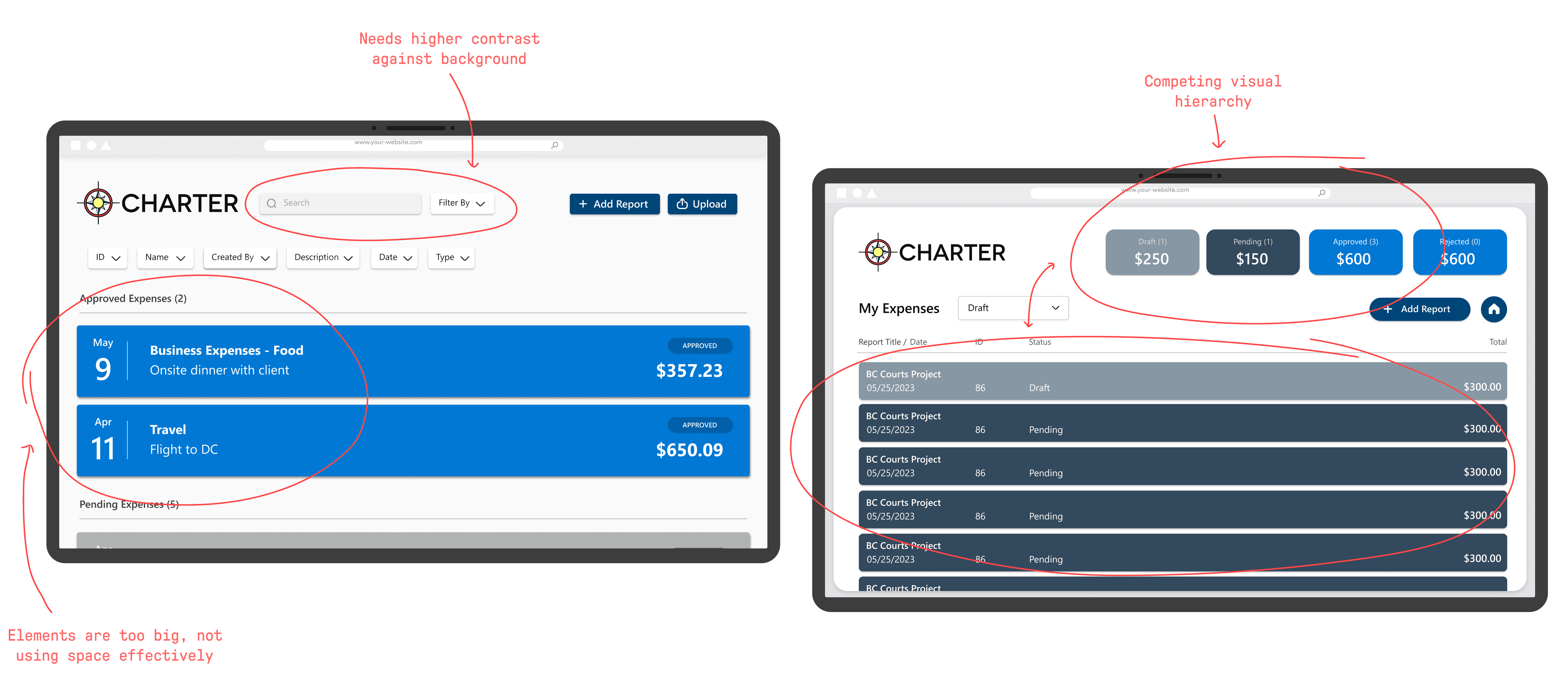 Charter's current expense reporting system has some major usability issues, making it difficult for employees to efficiently manage and submit expenses.