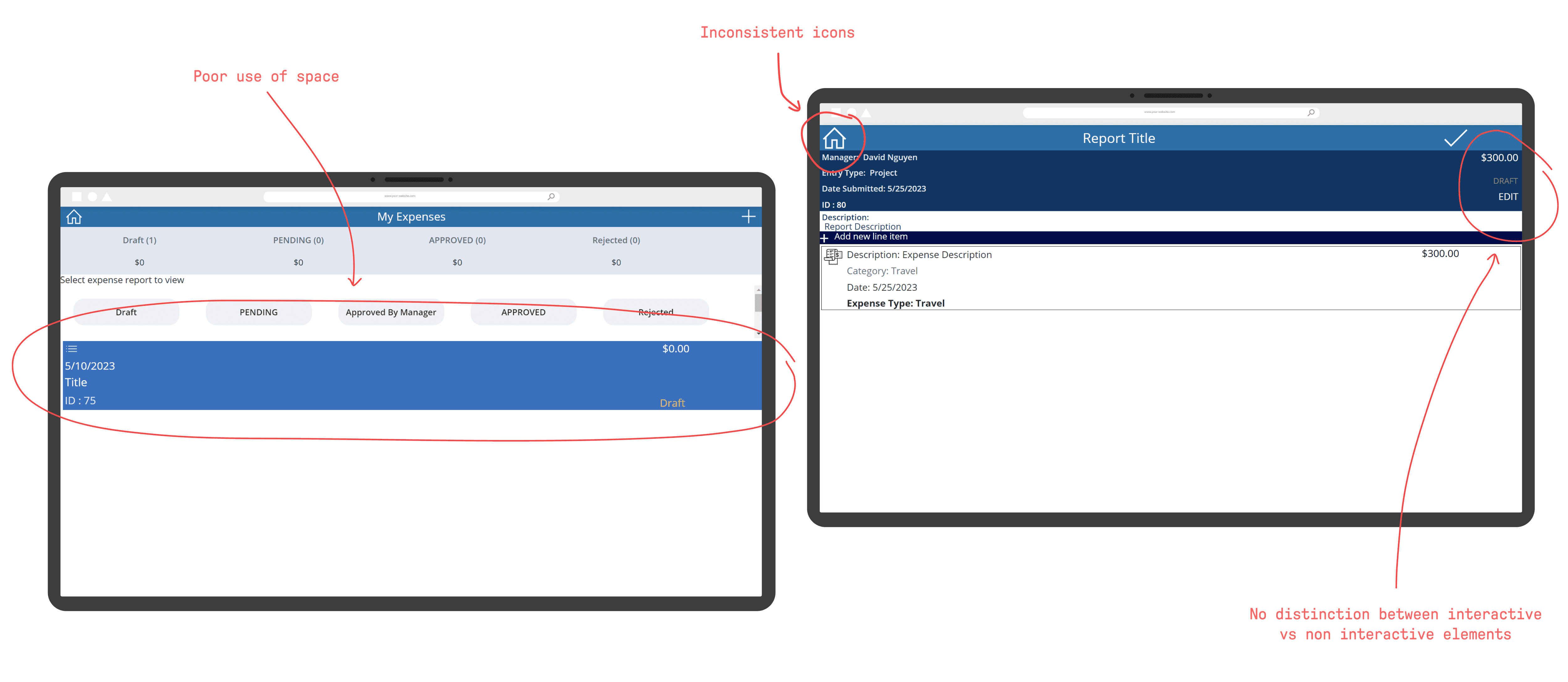 He also highlighted a major pain point, that the current system was desktop only. Employees often needed to submit expenses while out but couldn’t, as the application lacked support for mobile receipt uploads. As a result, they had to wait until returning to a desk, creating unnecessary friction in the process. This was a major insight and made it clear that ensuring the application was responsive and accessible on mobile devices needed to be a central focus of the redesign.